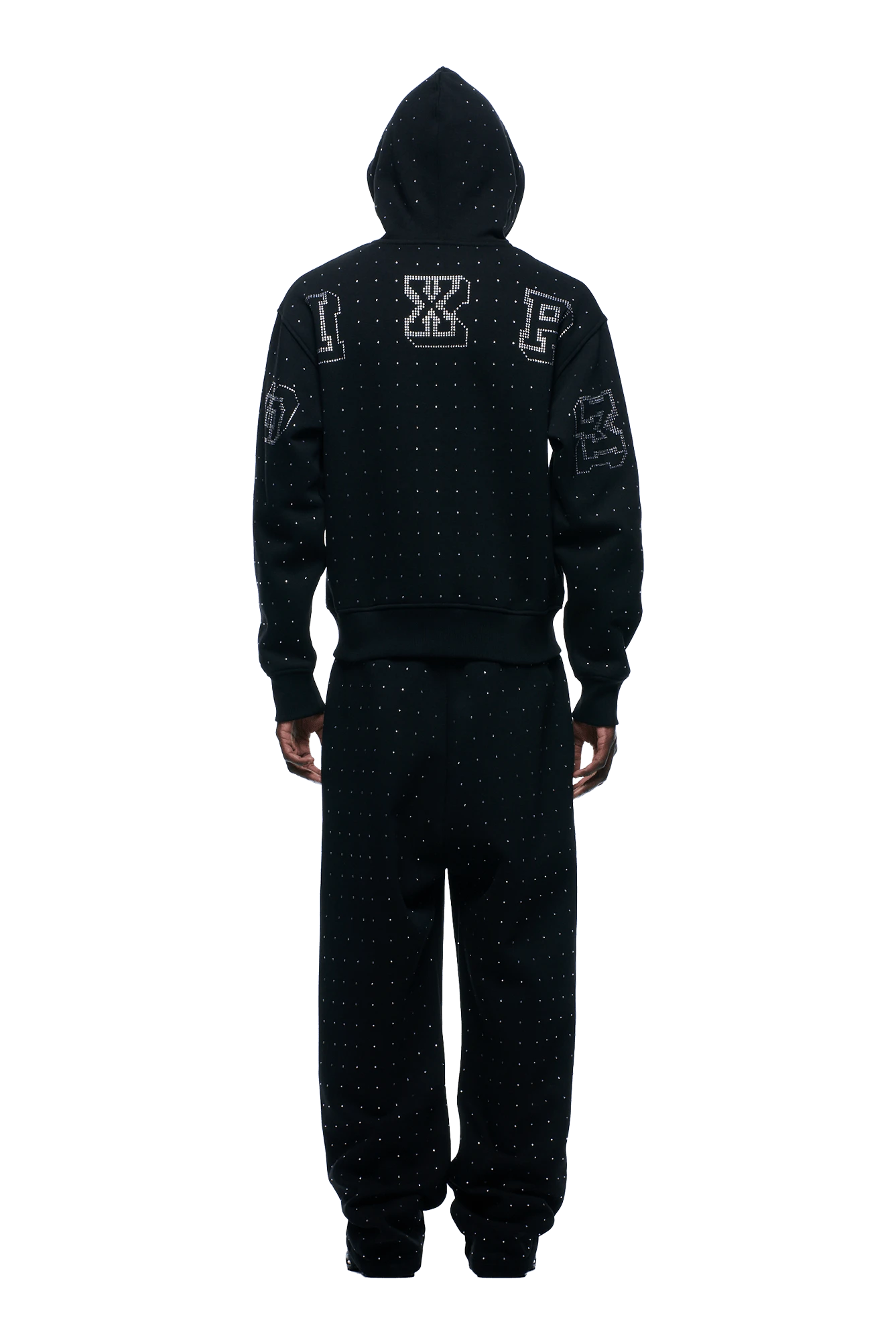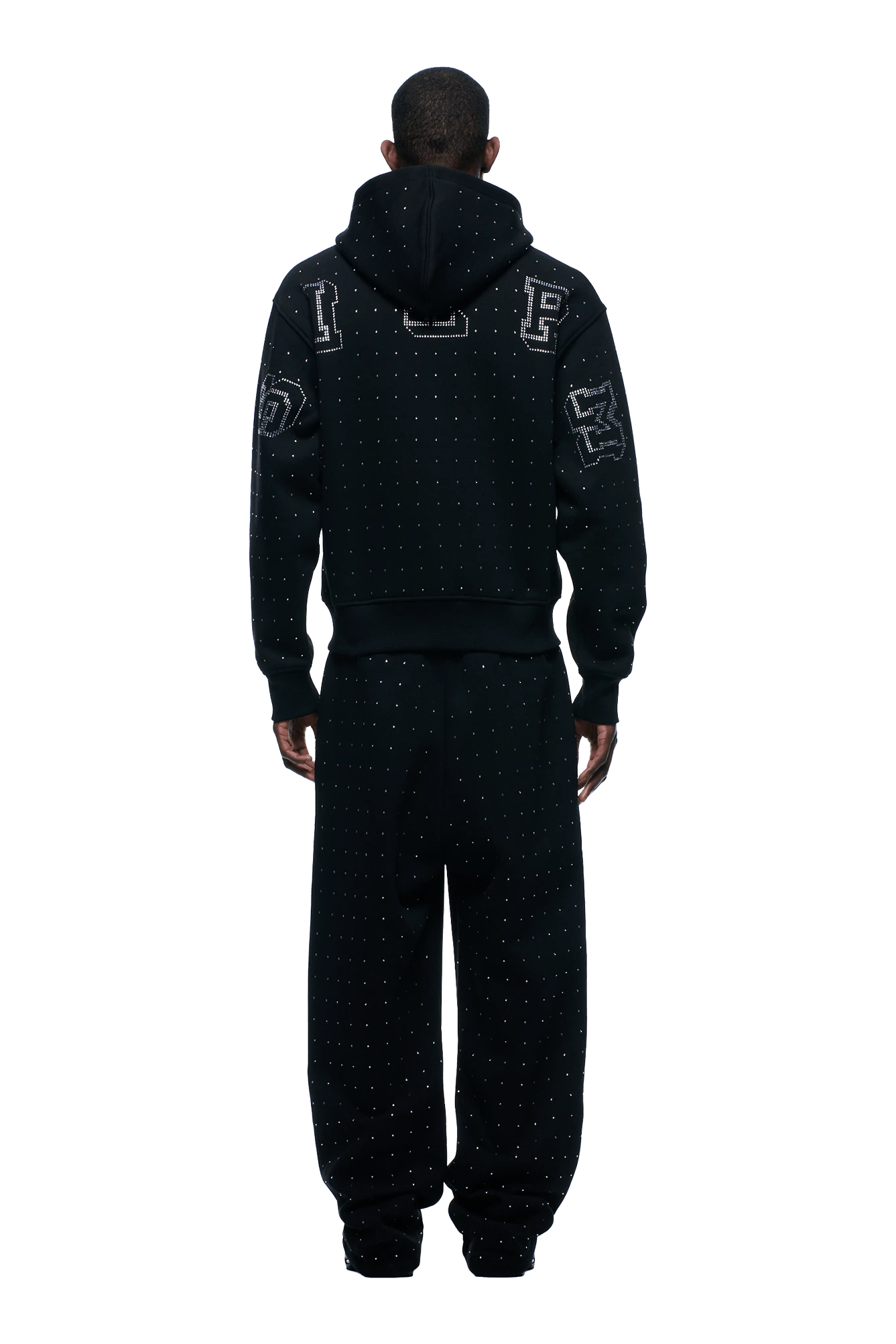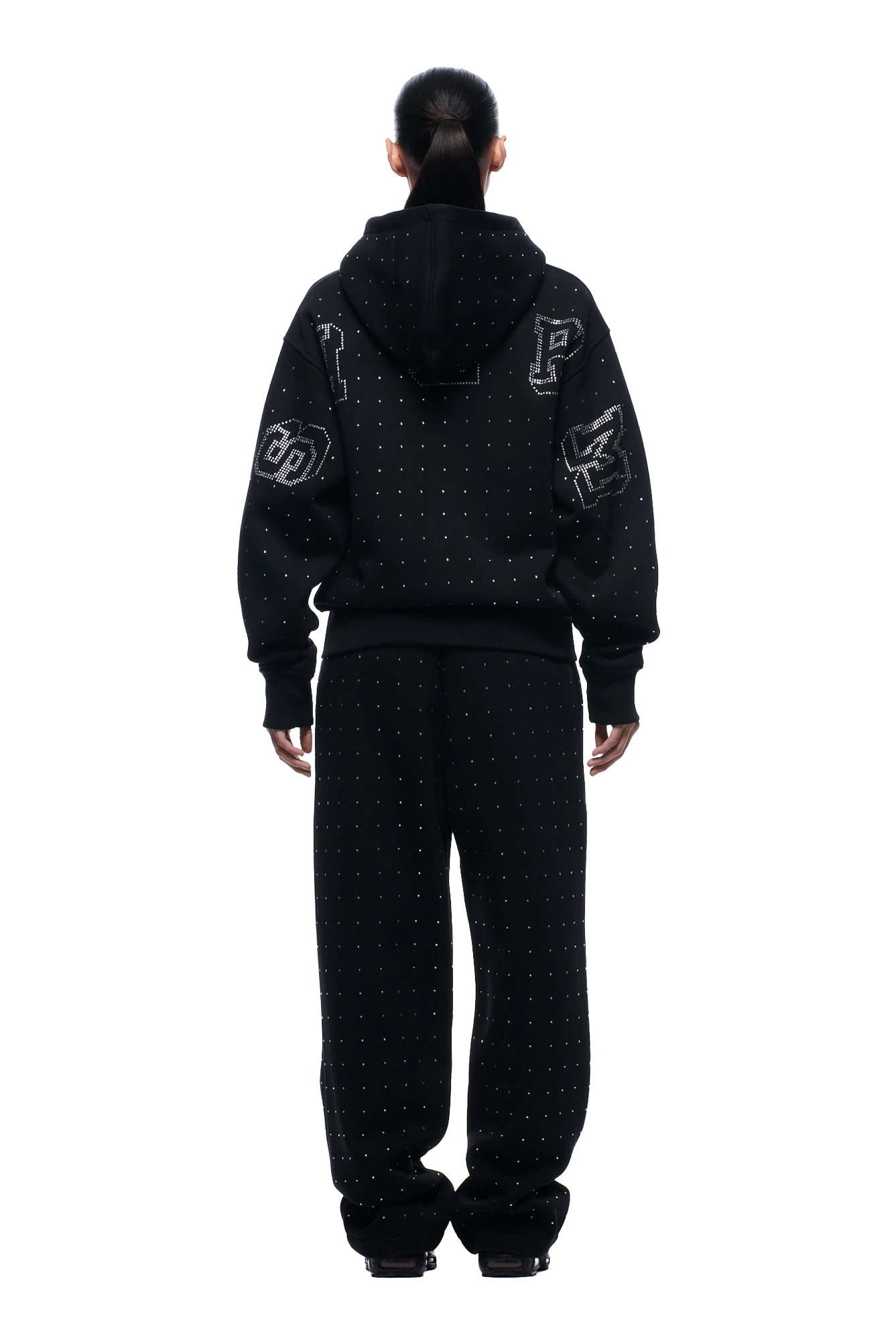 RHINESTONE LETTER ZIP HOODIE BLACK(Rhinestone Letter Zip Hoodie Black)