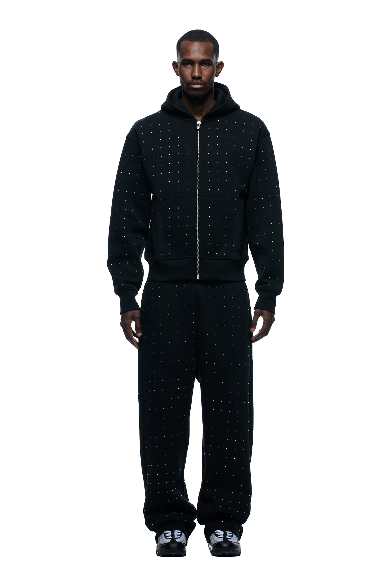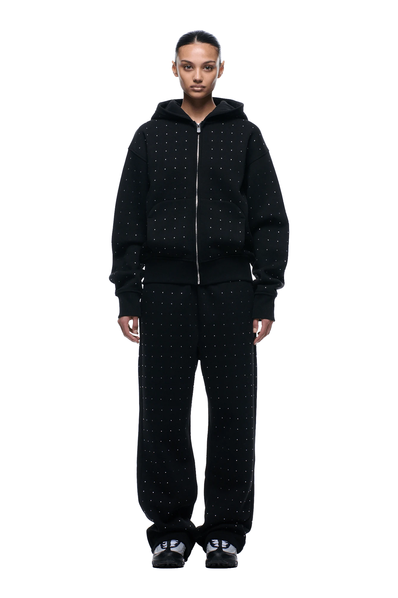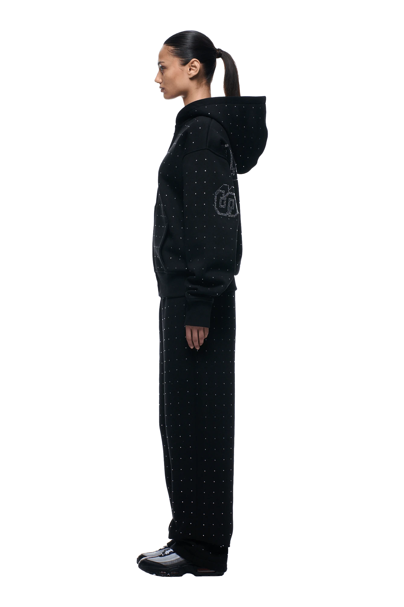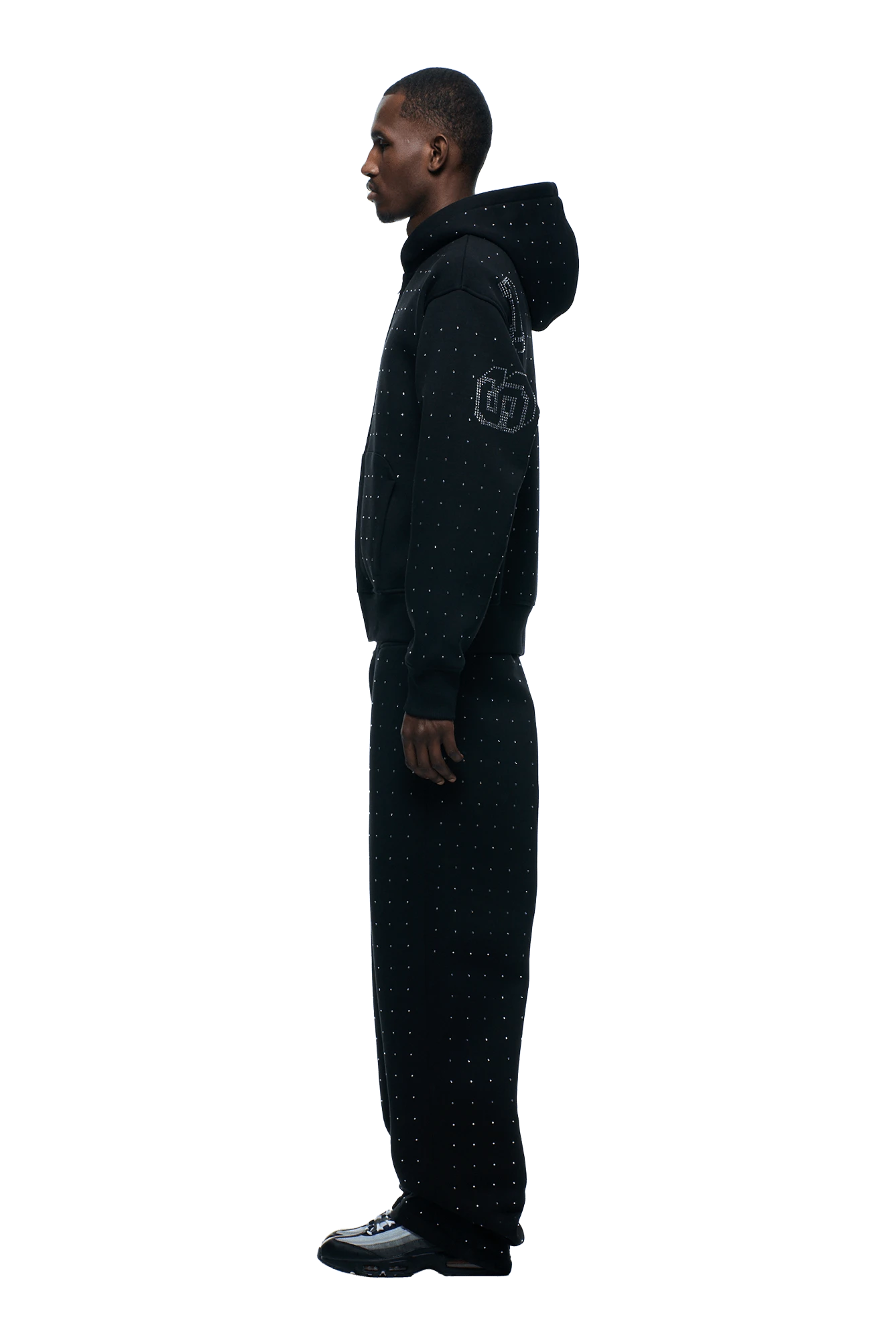 RHINESTONE LETTER ZIP HOODIE BLACK(Rhinestone Letter Zip Hoodie Black)